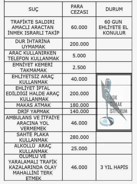Trafikte makas atmaya 90.000 in TL para, 60 gün sürücü belgesi geri alma ve trafikten men cezası.