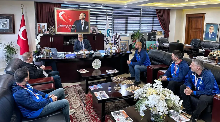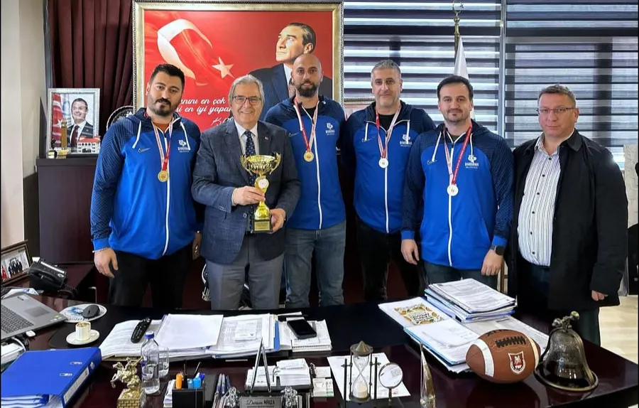 Şampiyon sporcular, kazandıkları ödüllerle birlikte Bandırma Belediye Başkanı Dursun Mirza’yı makamında ziyaret etti.