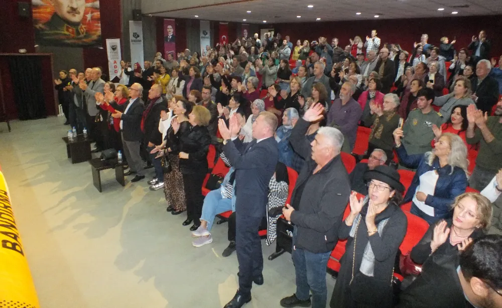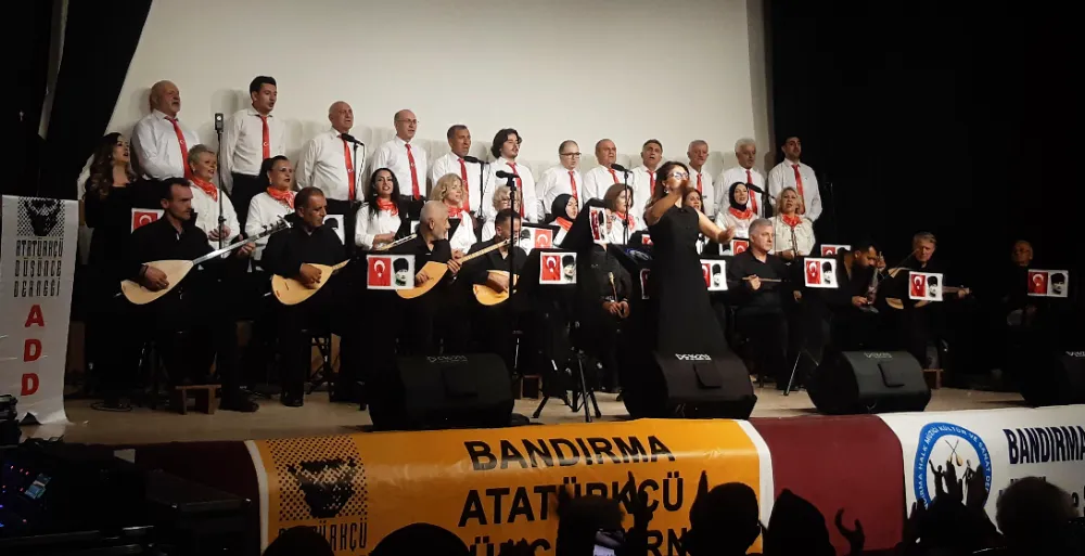 Salonun hıncahınç dolu olduğu konserde konuşan ADD Bandırma şube Başkanı Hayri Turna; “Ne kadar engellemeye çalışılsa da Atatürk'ün insanlığın kalbinden kopartmaya kimsenin gücü yetmeyecektir.” dedi.