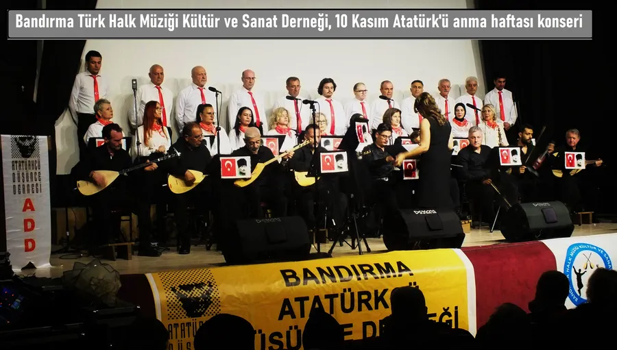 Bandırma Atatürkçü Düşünce Derneği, Bandırma Türk Halk Müziği Kültür ve Sanat Derneği'nin 35kişilik dev kadrosu ile Barış Manço Kültür Merkezinde gerçekleştirdiği 10 Kasım Ata'yı Anma gecesi büyük ilgi gördü.