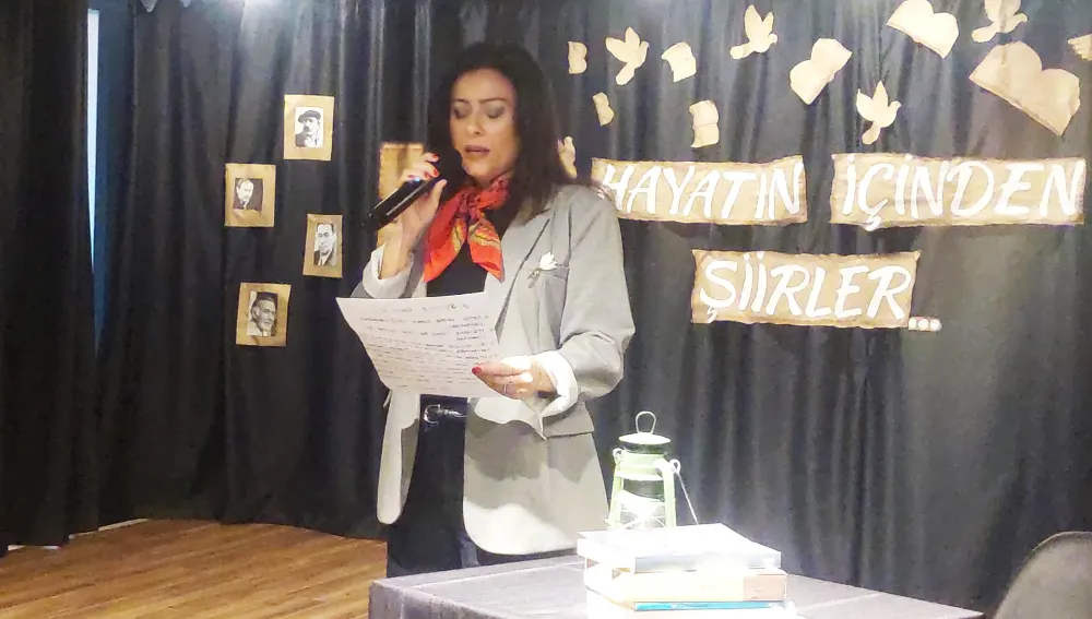 Akın Ertürk Anadolu kolej Ayyıldız Mahallesi kompleksinde gerçekleşen şiir gecesinde, öğretmenler, öğrenciler ve veliler şiir ile harman olan duygu yüklü ortak gecede sanatçı Verda Dönmez sahne aldı.
