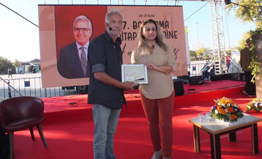 Söyleşinin ardından, Gürsoy’un plaketini, Bandırma Belediye Meclis Üyesi Dr. Tuğçe Karaçay verdi.