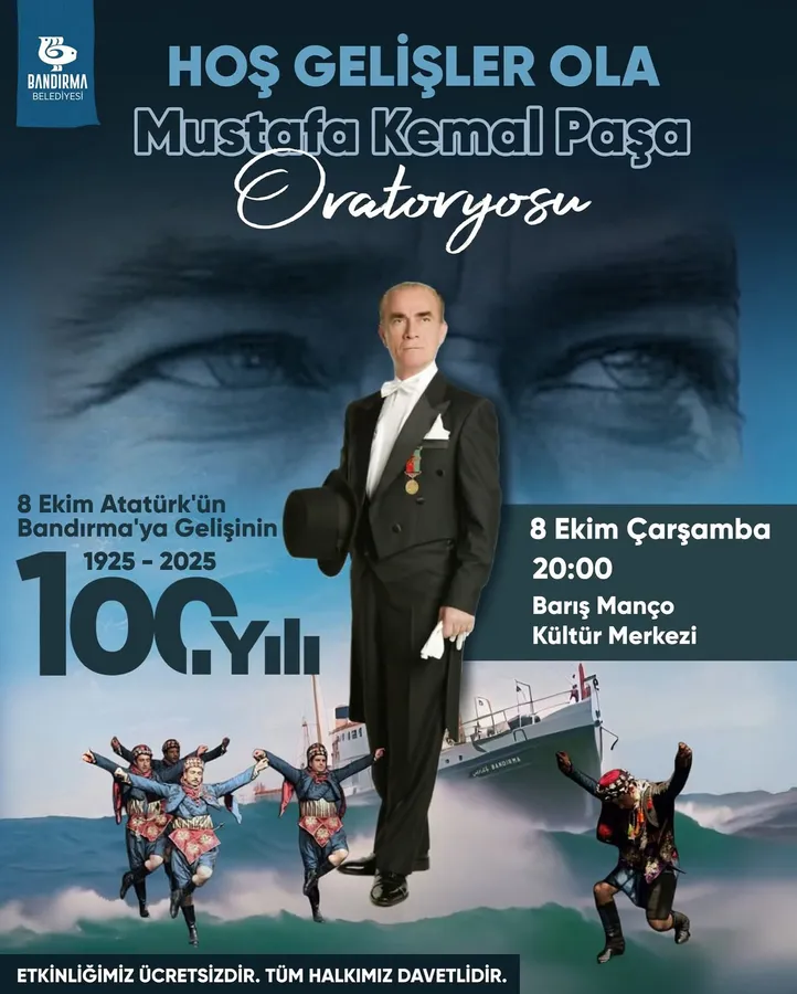 Ulu Önder Gazi Mustafa Kemal Atatürk’ün Bandırmayı ilk kez ziyaret edişinin 100. yıl dönümü onuruna düzenlenen, ücretsiz özel programda çağrı