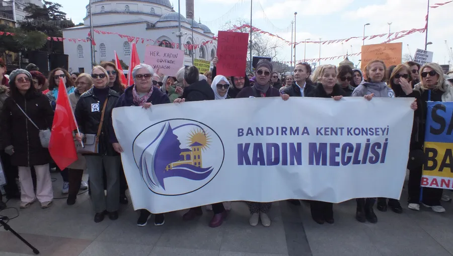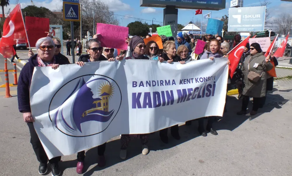 İDO önünde toplanan kadınlar, yürüyerek cumhuriyet alanına geldiler. Burada konuşmayı, Cumhuriyet Halk Partisi (CHP) Bandırma Kadın Kolları Başkanı Filiz Özdemir yaptı. Özdemir, “Kadın cinayetleri münferit değil, politiktir. Kadın cinayetleri kader değil, yanlış politikaların sonucudur. İstanbul Sözleşmesi’nin yeniden yürürlüğe girmesini istiyoruz” dedi.