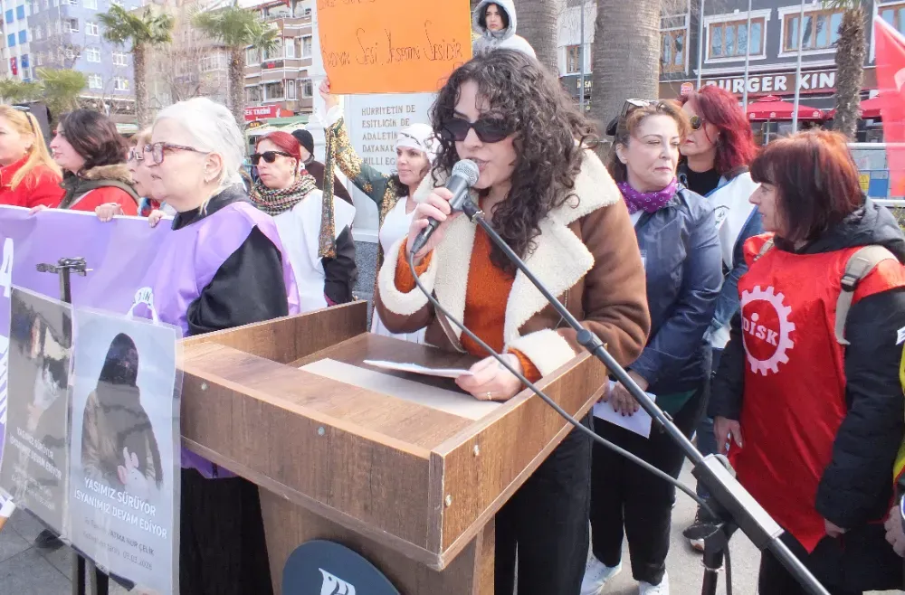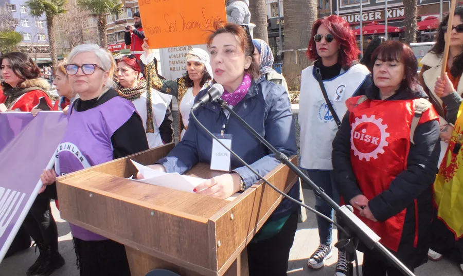 . Özdemir; "Bugün, tarihsel bir direnişin simgesi olan 8 Mart’ı; kadınların yaşam hakkının sistematik olarak tehdit edildiği, şüpheli ölümlerin karanlıkta bırakıldığı ve faillerin cezasızlıkla ödüllendirildiği bir dönemde karşılıyoruz.
