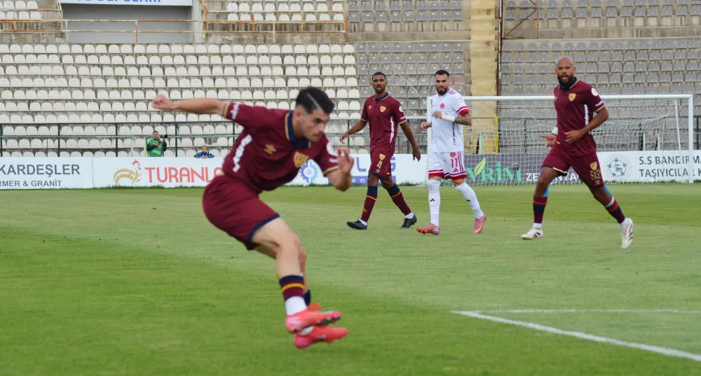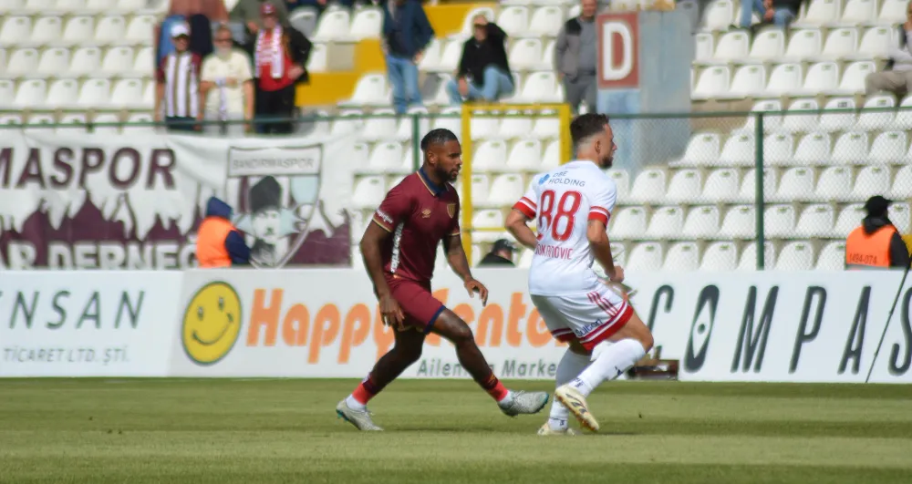 Bandırmaspor, 11. dakikada öne geçti. Hikmet Çiftçi, bir ara pasıyla topu Gani Burgaz’a kazandırdı. Bu oyuncu, “al da at” dercesine topu kale yakınındaki Douglas Tanque’ye kazandırdı. Tanque, topu ağlara yuvarladı: 1-0