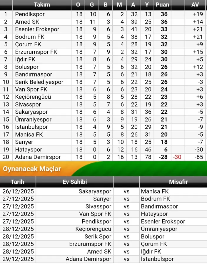 Bu maç öncesinde Bandırmaspor, 26 puanla dokuzuncu, Sivasspor ise 22 puanla on ikinci sırada yer alıyor.