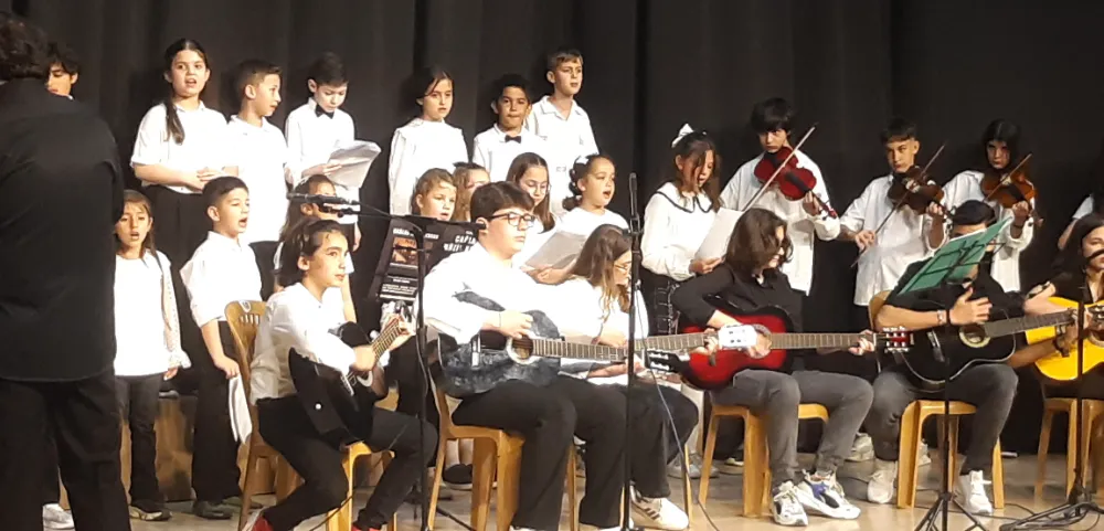 Barış Manço Kültür Merkezi’ndeki program sırasında salonun tamamen dolu olduğu dikkat çekerken, çocuk orkestrası da beğeni aldı.