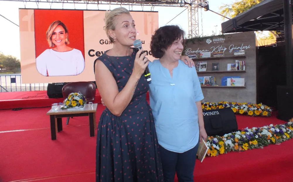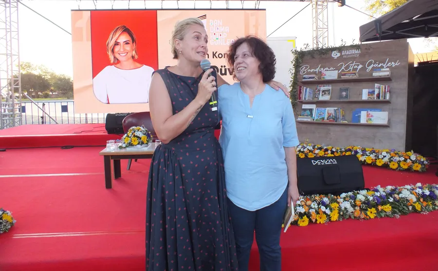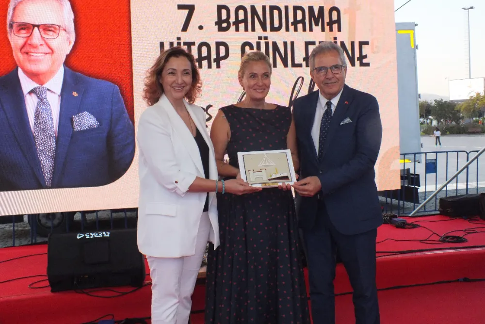 Söyleşinin ardından Düvenci’nin plaketini Bandırma Belediye Başkanı Dursun Mirza ve belediye meclis üyesi Elif Didem Çidem verdi. ÖNDER BALIKÇI