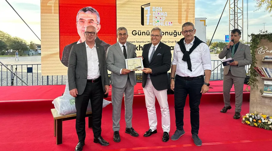 Konuşmasının ardından Günaydın’a plaketini Bandırma Belediye Başkanı Dursun Mirza, Balıkesir Milletvekili Serkan Sarı ve CHP Balıkesir İl Başkanı Erden Köybaşı birlikte verdiler. ÖNDER BALIKÇI