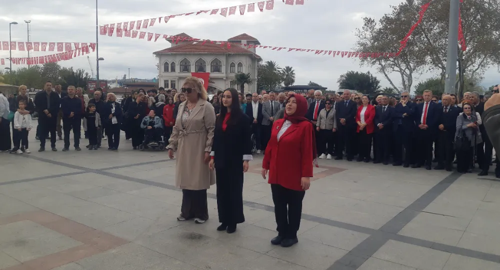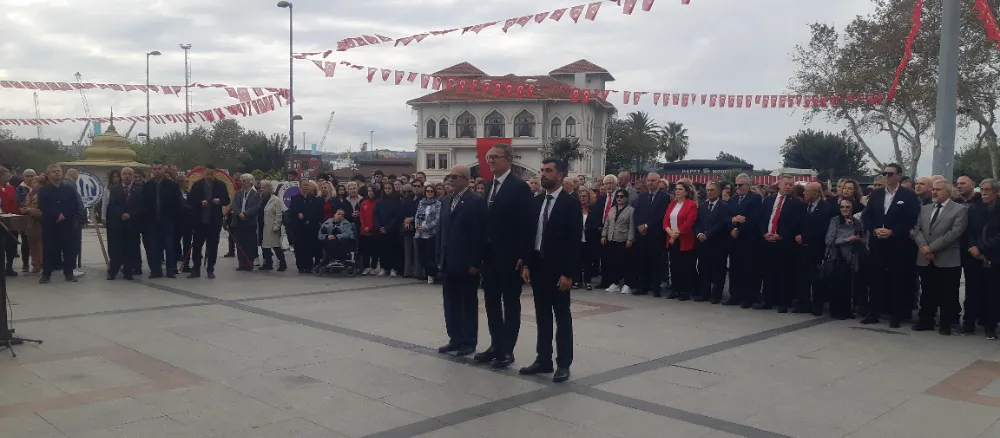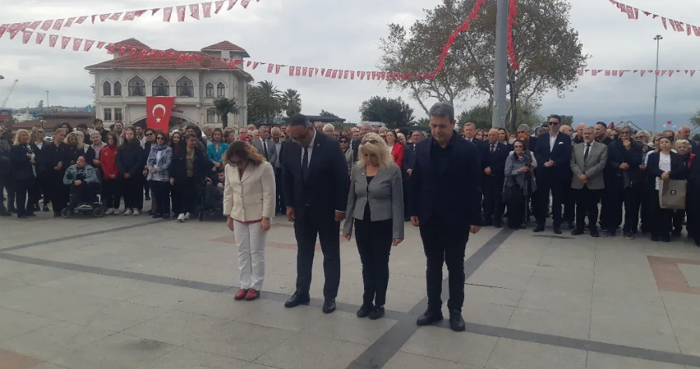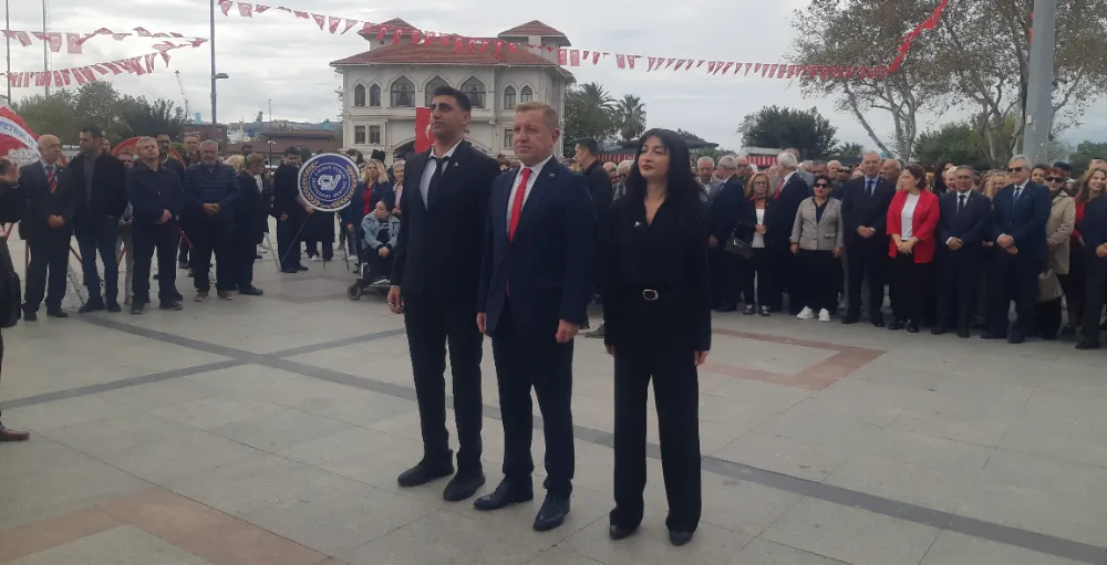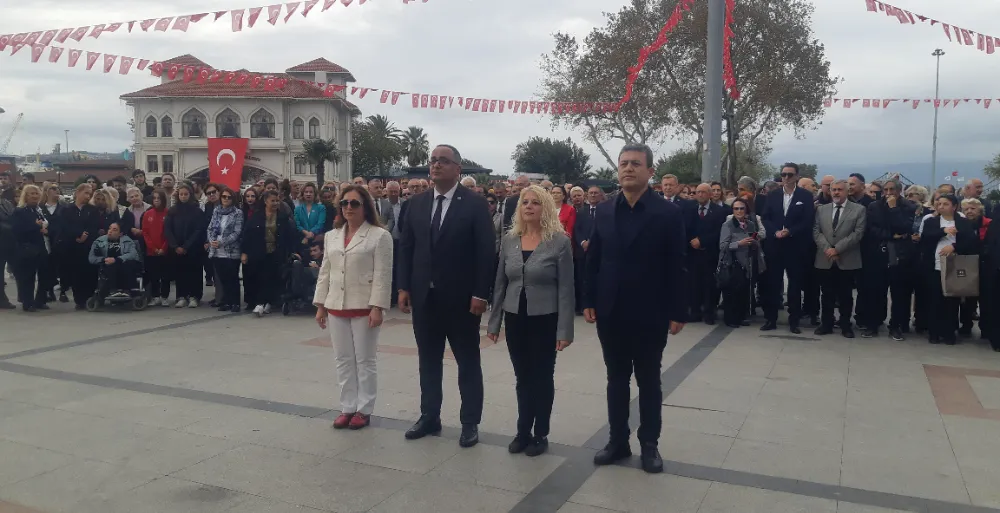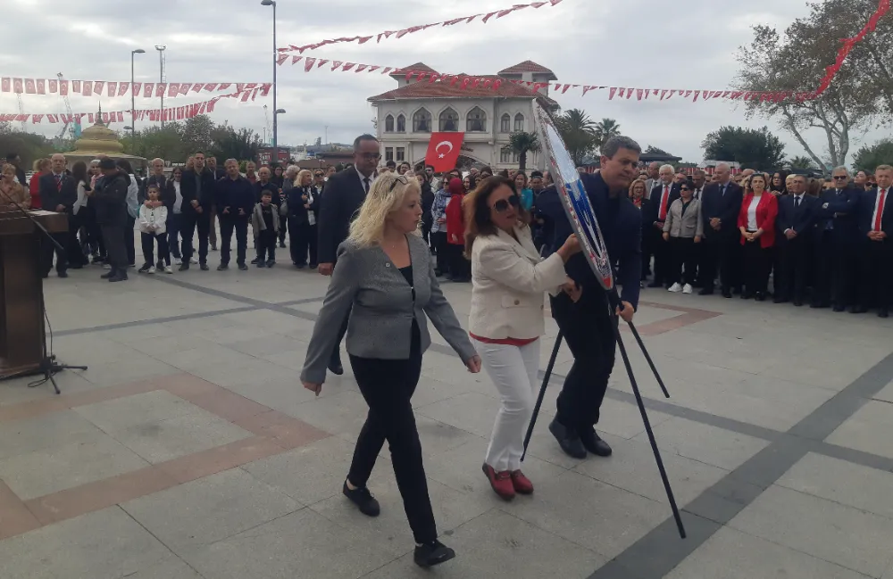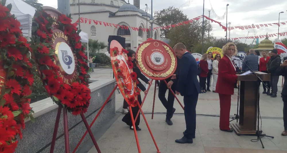 Bandırma'da 29 Ekim Cumhuriyet Bayramı kutlamaları resmi çelenk sunma programı ardından gerçekleşti. CHP ilçe Başkanlığı koordinasyonunda gerçekleştirilen kutlama programın anıta çelenklerin sunumu ile başladı.
