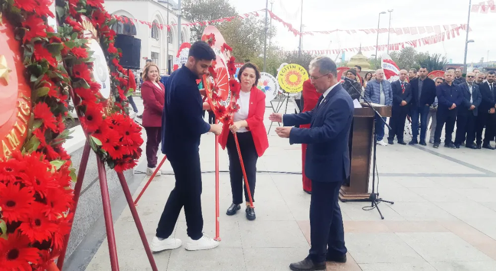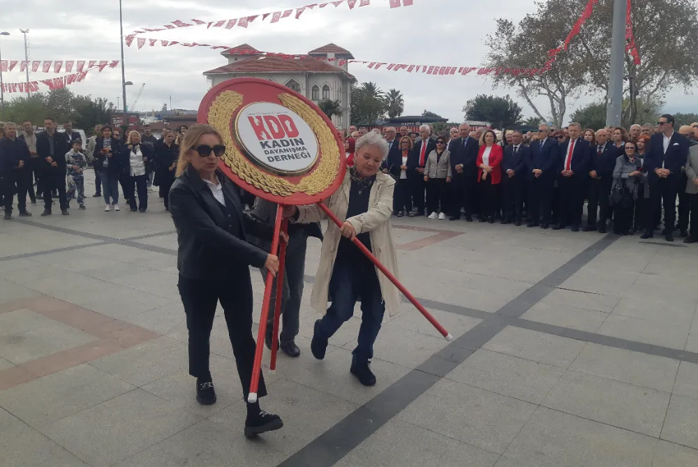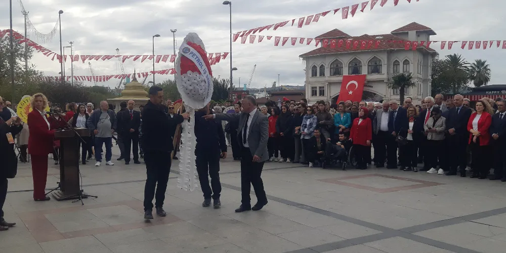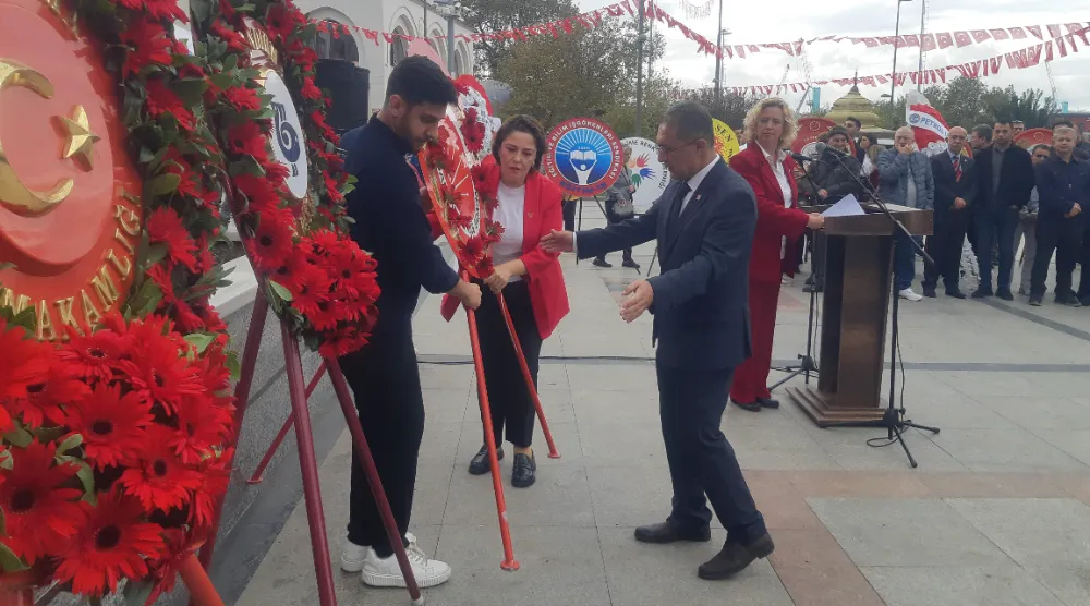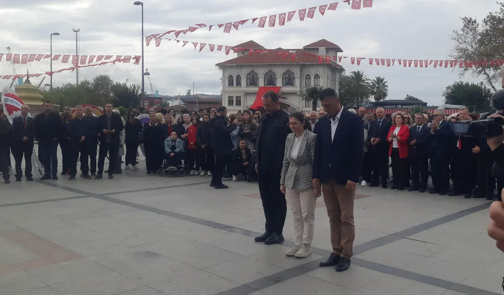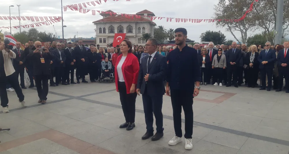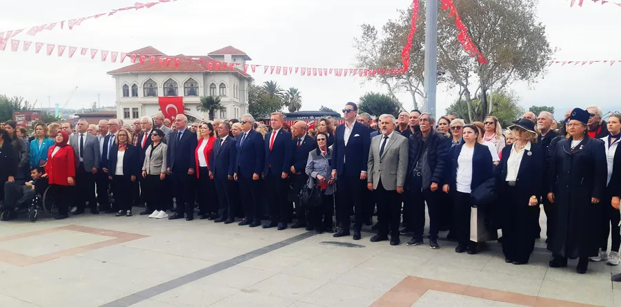 Bandırma'da 29 Ekim Cumhuriyet Bayramı kutlamaları resmi çelenk sunma programı ardından gerçekleşti. CHP ilçe Başkanlığı koordinasyonunda gerçekleştirilen kutlama programın anıta çelenklerin sunumu ile başladı.