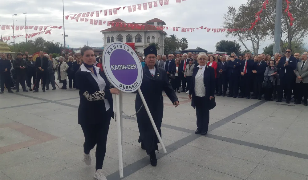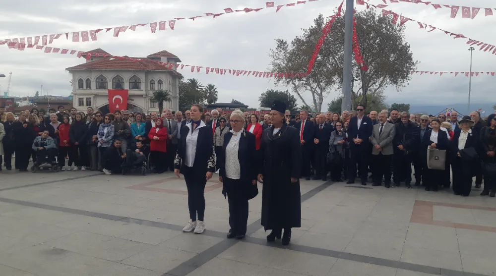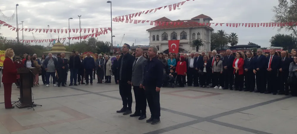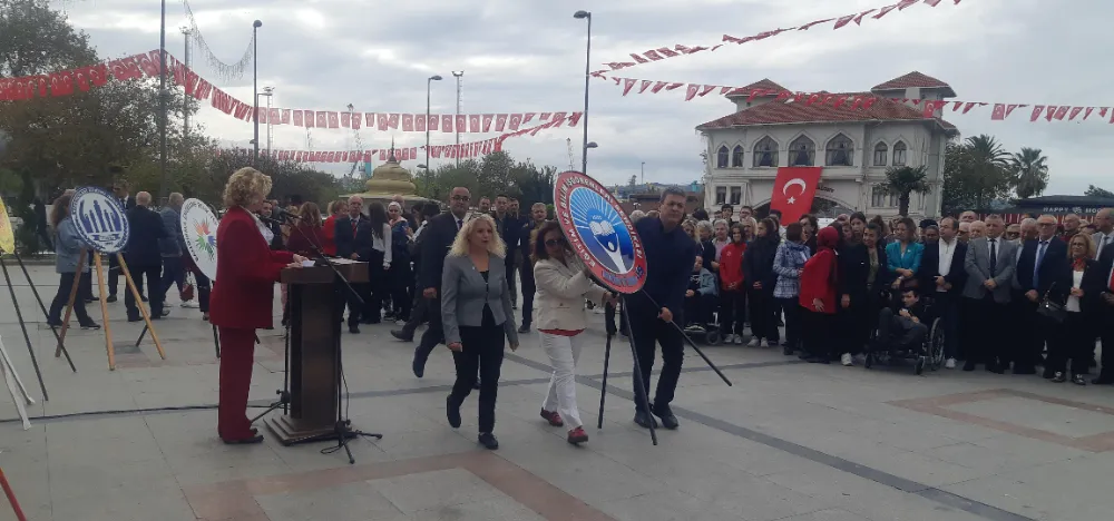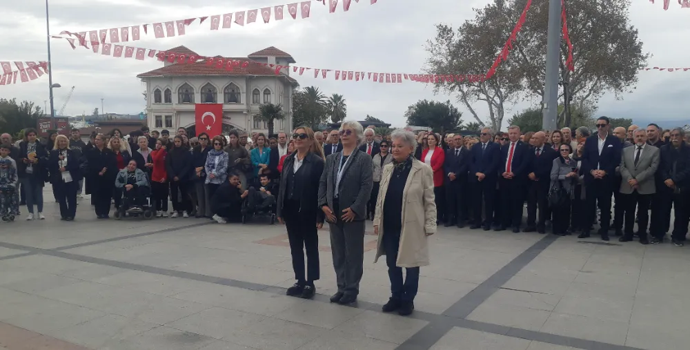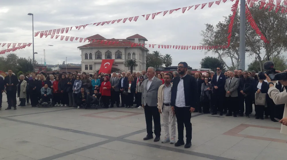 Saygı duruşu ve İstiklal marşının okunması ardından CHP İlçe Başkanı Mehmet Atak, ADD Bandırma Şube Başkanı Hayri Turna ve Başkan Dursun Mirza günün önemini içeren konuşmalarında Cumhuriyetimizin 102. yılına vurgu yapıldı.