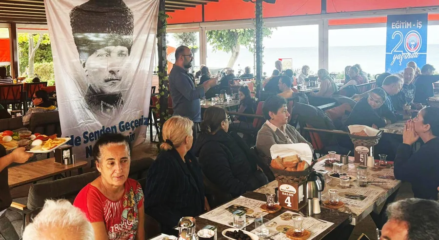 Cumhuriyet Haftası’nda Eğitim İş Erdek Temsilciliği Yönetim Kurulu’nun düzenlediği Hep Birlikte Cumhuriyet İçin Dayanışma Kahvaltısı’ da bir araya gelen Eğitim İş Sendikasına üye eğitim emekçileri ve davetliler müzik öğretmeni Mustafa Kılıç’ın seslendirdiği türkülere eşlik etti.