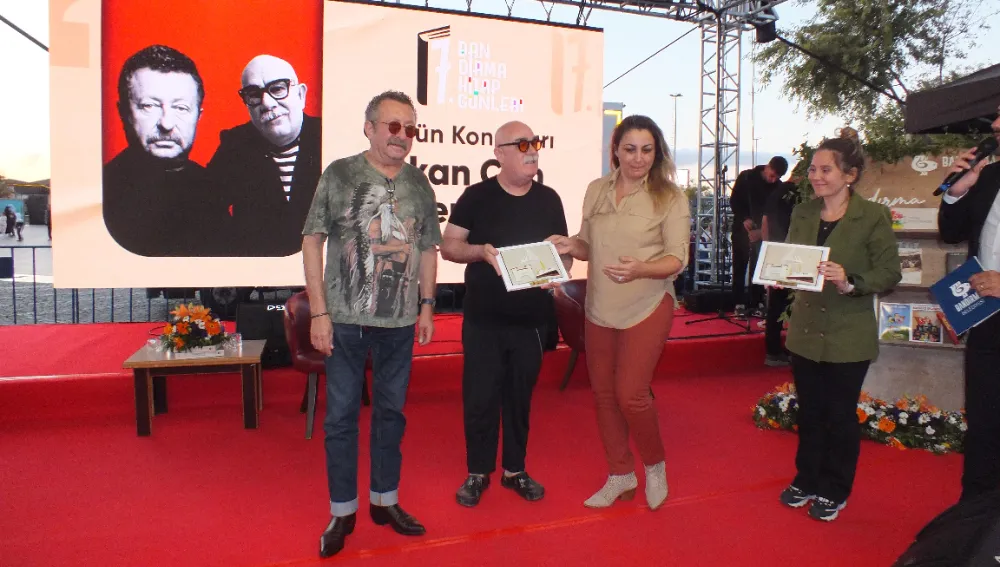 40 yıldan beri oyunculuk yapan Güven Kıraç ve 51 yıllık oyuncu olan Erkan Can’ın plaketlerini Bandırma Belediye Meclis Üyesi Dr. Tuğçe Karaçay verdi. ÖNDER BALIKÇI