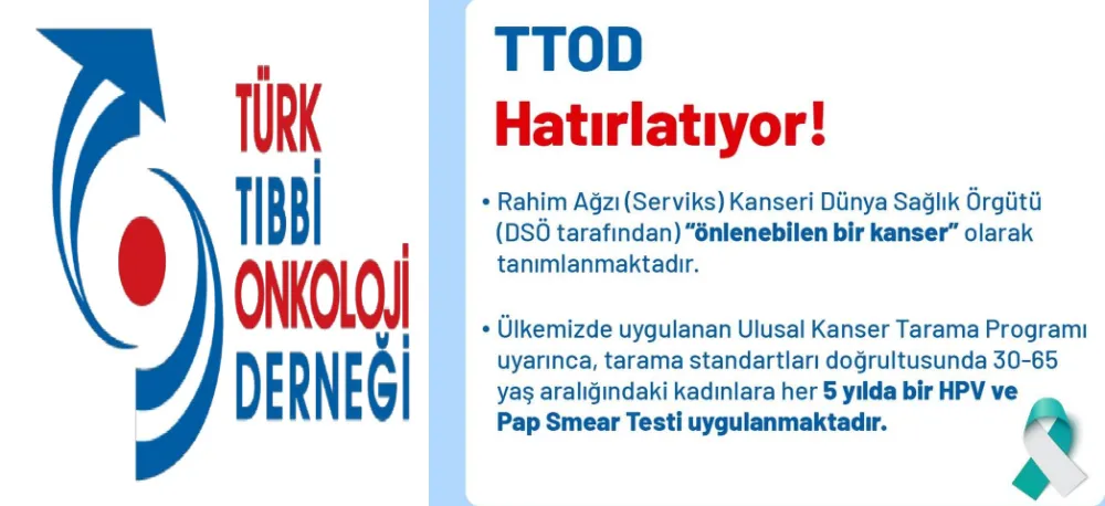 Türk Tıbbi Onkoloji Derneği (TTOD) tarafından, 1-31 Ocak Rahim Ağzı (Serviks) Kanseri Farkındalık Ayı kapsamında önemli açıklamalarda bulunuldu. Dernek Başkanı Prof. Dr. Nuri Karadurmuş ve Yönetim Kurulu Üyesi Prof. Dr. Gökşen İnanç İmamoğlu, serviks kanserinin önlenebilir bir hastalık olduğuna dikkat çekerek hayati uyarılarda bulundu.