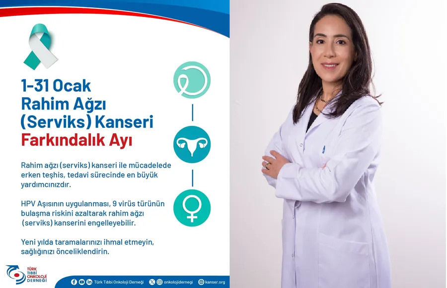 “Serviks Kanseri Farkındalık Ayı, kadınları bilinçlendirmek, yanlış inanışları ortadan kaldırmak ve koruyucu sağlık hizmetlerinin önemini hatırlatmak için önemli bir fırsattır. Unutulmamalıdır ki; bilgi, aşı ve tarama ile serviks kanseri büyük ölçüde önlenebilir.”