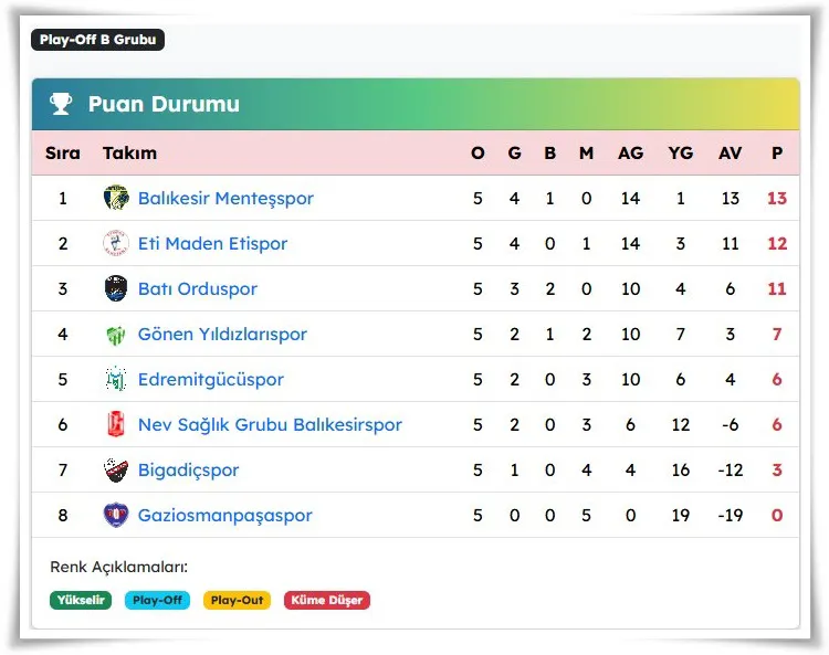 Tek devreli lig usulüne göre 8 takımın mücadele ettiği gurupta son iki haftaya girilirken 12 puanla 2.sırada yer alan Hasan Demir'in (Küçük Hasan) öğrencileri 10 Ocak Cumartesi günü saat 15:00'da 600 Evler sahasında lider Balıkesir Menteşspor'u konuk edecek. Galip gelmeleri halinde liderlik koltuğunun sahibi olarak Batı Orduspor karşısında alınacak 3 puan Eti Maden Etispor'u Türkiye Şampiyonasına taşıyacak.
