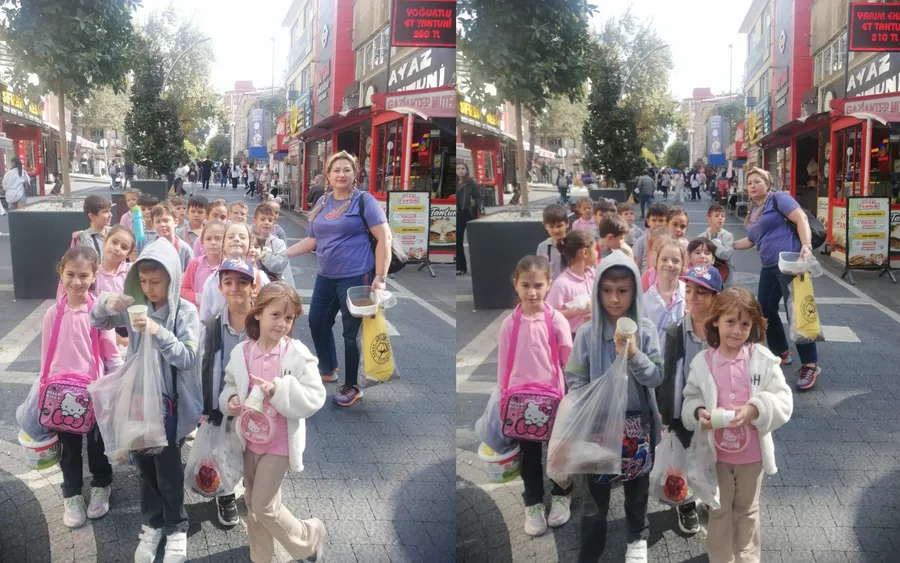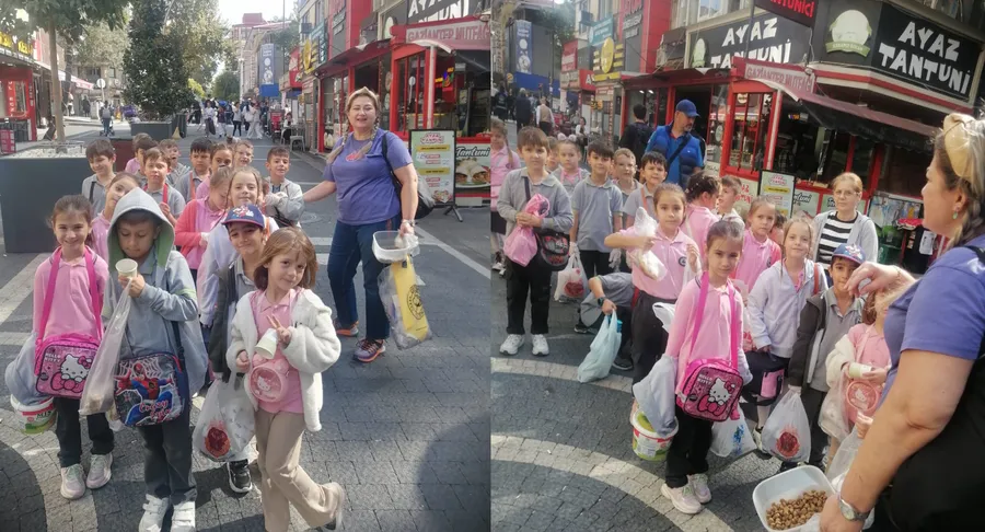 Hürriyet ilk okulu 2 f. sınıfı "4-Ekim Dünya Hayvanları Koruma Günü" kapsamında önemli bir farkındalık için sevgi yolunda sokak canlarına mama ikram ettiler.