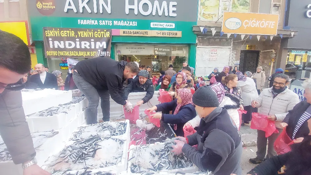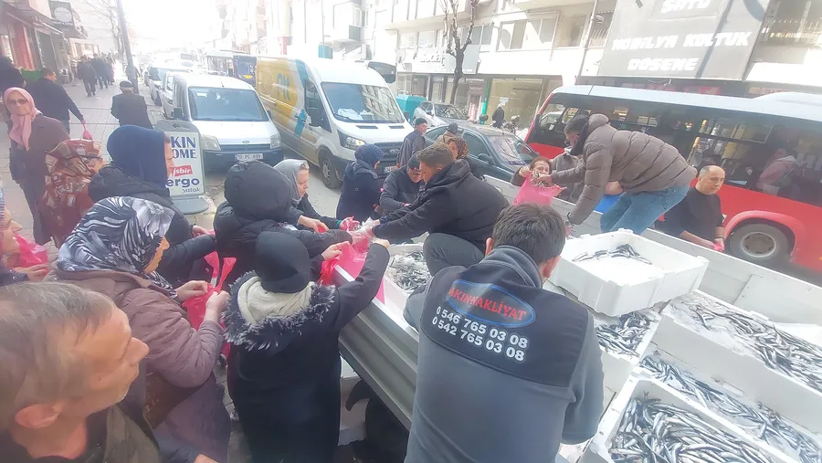 Bursa Geçiciler Balıkçılık Halil Geçici'nin Mübarek Ramazan ayı suyu hürmetine Ordu Caddesi şok market önünde 2 si poşet 5'i Balık dağıtımı olan 7 personel ile saat 12.oo den 15.oo e kadar 3 saat durmak bilimden ücretsiz Hamsi dağıtımı gerçekleştirildi.