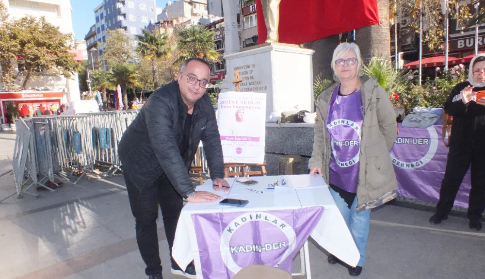 Sosyal aktiviteleri ile adından söz ettiren Bandırma Kadın-Der 25 Kasım "Kadına yönelik şiddete karşı uluslararası mücadele gününde, Öldürülmesi yılan hikayesine dönen Üniversite öğrencisi Rojin için imza kampanyası düzenledi.