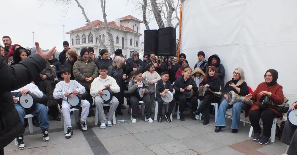 İftar çadırı önünde Bandırma Belediyesi Halk dansları topluluğunun folklor gösterisi ardından, küçüklerden oluşan darbuka ritim Show gösterisi kulakların pasını sildi.