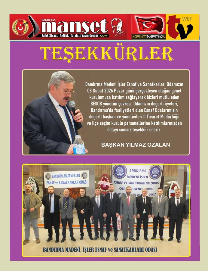 Bandırma Madeni İşler Esnaf ve Sanatkarları Olağan genel kurulu ve teşekkür