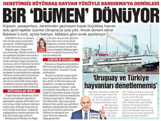 Konuyu yakından takip eden İYİ Parti Grup Başkan Vekili ve Balıkesir Milletvekili Op. Dr. Turhan Çömez, “Uruguay’dan gelen gemiye kontrolsüz ve denetimsiz bindirilen hayvanların Türkiye’ye girişlerinin yapılması ve tahliyelerinin sağlanması için mahkemeye başvurulmuştu. Mahkeme, ‘Bu hayvanlar Türkiye’ye sokulamaz’ kararı verdi” dedi.