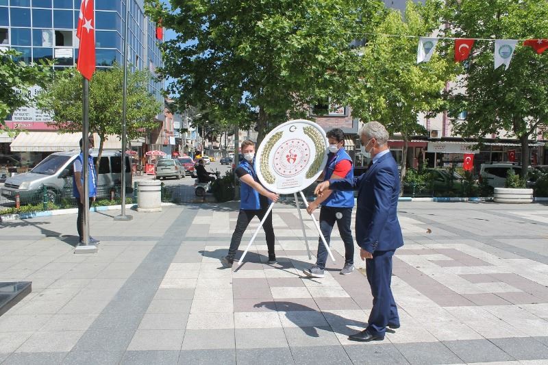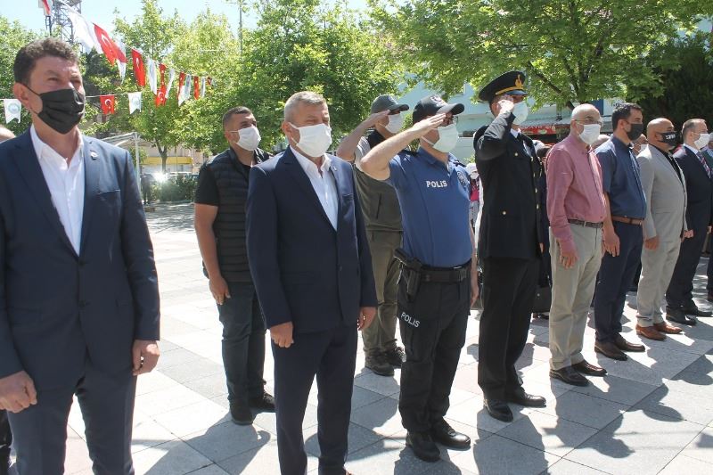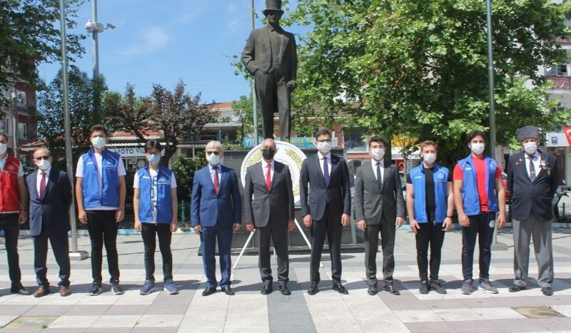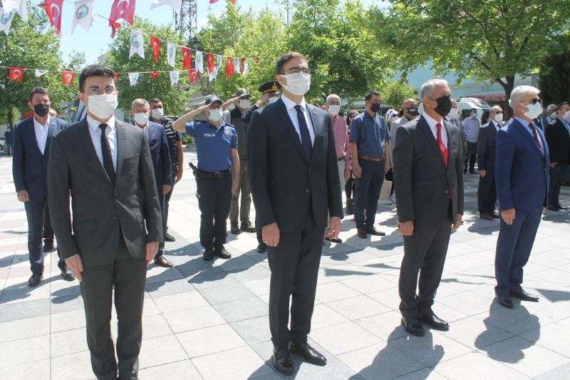 Manyas ilçesinde 19-Mayıs Atatürk'ü Anma Gençlik ve Spor Bayramı salgın önlemleri kapsamında sade bir törenle kutlandı.