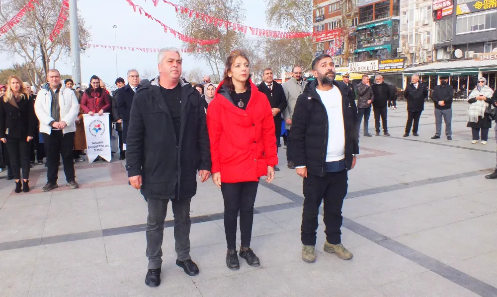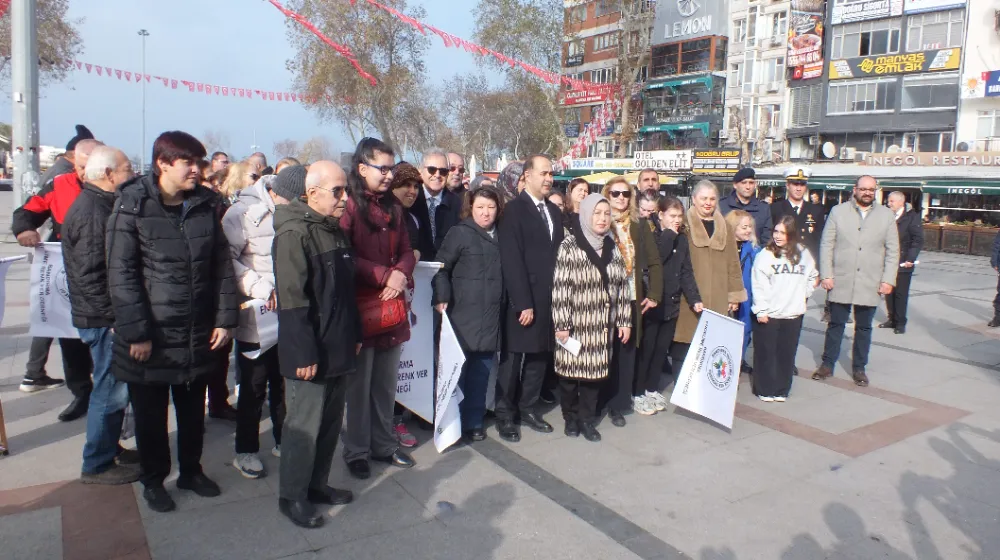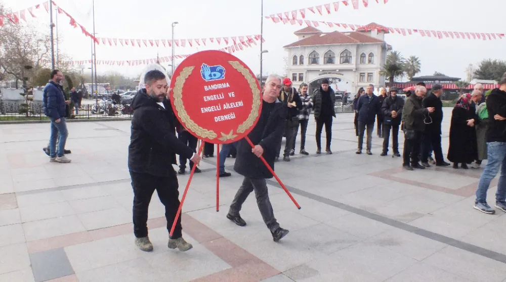 Kaymakam Engin Aksakal ve Belediye Başkanı Dursun Mirza’nın da katıldığı Cumhuriyet Alanı’ndaki etkinlikte, “Bandırma Engelime Renk Ver Derneği” Başkanı Nercü Çalışkan konuştu.