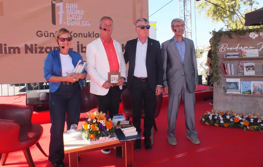 Söyleşinin sonunda Bandırma Belediye Meclis üyesi Bilgen Süngü, Nizam ve Köse’ye plaketlerini verdi.