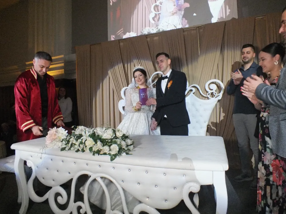 Cumartesi günü Manyas Belediyesi Kültür merkezi sosyal tesislerinde hazırlanan yemekli kına gecesi, Pazar günü gelin alıcı programı Aksakal’da tamamlanırken, ayni akşam Esin Düğün salonunda gerçekleşen Düğün töreni Hatice & Ali Yıldız çifti ile Hurinaz & Hasan Akkoyun çiftinin eş-dost ve sevenlerinin hazır olduğu yemekli düğün nikah töreni ile başladı.