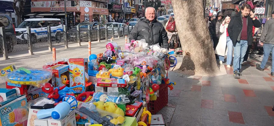 Geçen yıllara göre bu bayram öncesi tezgâh önünden geçenlerin dönüp bile bakmadıklarını söyleyen Mustafa Kozlucalı, “ 14 yaşımdan beri büfe çalıştıran babamın yanında çırak olarak çalışmıştım. Ticareti iyi bilirim. Çoğu tüketim malları gibi oyuncak çeşitleri de zamlandı. Tezgâhımda 150 liradan 400 liraya kadar bebek, tavşan, kedi, köpek, helikopter ve uçak gibi çeşit çeşit oyuncak var ama geçmiş yıllardaki yoğun talep maalesef yok. Tezgâhımın önünden geçenler de bakıp bakıp geçiyorlar. ” dedi ve bakanlar da sadece fiyat sorup gittiklerini söyledi. Erdem ÖZCAN