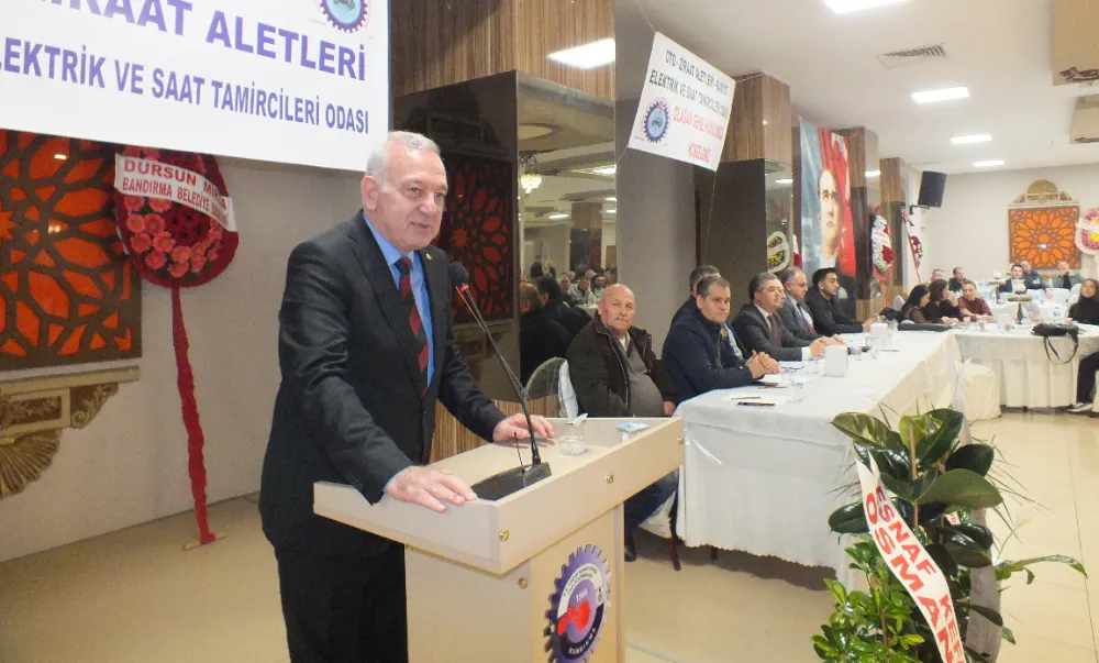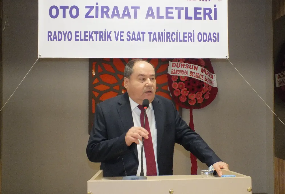 Başkan Dursun Mirza'nın Genel Başkan Özgür Özel'in programı dolayısı ile Denizli'de bulunması nedeniyle yerine genel kurula katılan Başkan yardımcısı Niyazi Yeloğlu, esnaf camiasının demokratik temayülleri uygulayarak gerçekleştirdiği kongrelerini kutlayarak, Bandırma Belediyesi olarak her zaman esnaf ve sanatkarın yanında olduklarını açıkladı.