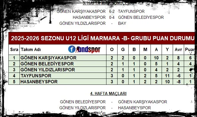27 Eylül 2025 tarihinde start alan Balıkesir U12 Ligi A ve B gruplarında 3.hafta müsabakaları tamamlandı.