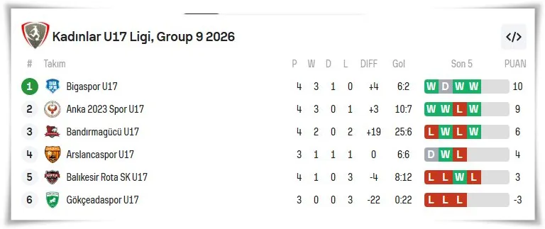 U17 Kızlar Gelişim Ligi'nde Bandırma'mızı başarıyla temsil eden Bandırmagücü U17 Kız Futbol Takımı ligin 4.haftasında rakibine gol oldu yağdı. 17-0