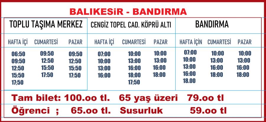 Büyükşehir Ulaşım denetimli Bandırma-Balıkesir hattı 100 tl oldu.