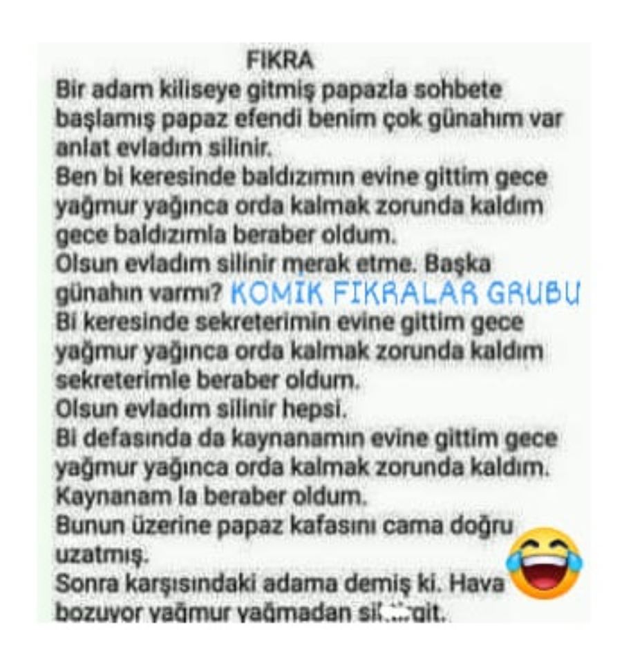 Kilolu bir kadınmış. Sık sık diyete, rejime başlıyormuş. Yine böyle diyet yapma kararı aldığı bir gece, yatak odasındaki tuvalet aynasına, sabah uyandığında görebilmek ve uygulamak için rujla, “Yağ, tuz, şeker!” yazmış.