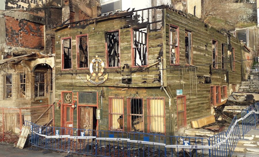 Sahil Sokak’ta ayni sırada, tescilli 4 yapıdan biri olan ve restoran olarak kullanılan 8 nolu yapı yanındaki kapısı açık olan ve kullanılmayan 10 nolu yapı meskûn halde yıkılmaya yüz tutarken belediye tarafından 3 yıl önce alınan önlem sadece 2-3 tane bariyer koymak oldu. Sahiplerini de tespit edip korumaya zorlanabilinirdi… Bariyerlere rağmen kapısı açık eve kolayca giren kimsesizler sonunda yapacaklarını yaptılar.