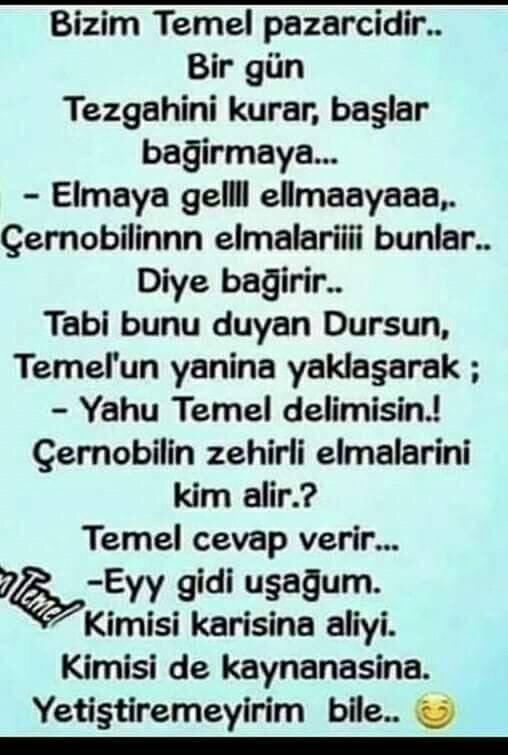 İki Laz yılan olan Temel ile İdris, yolda gidiyorlarmış. Temel, birden İdris’e dönüp, “Ula İdris, biz zehirli miydik, yoksa zehirsiz mi?” diye sormuş.