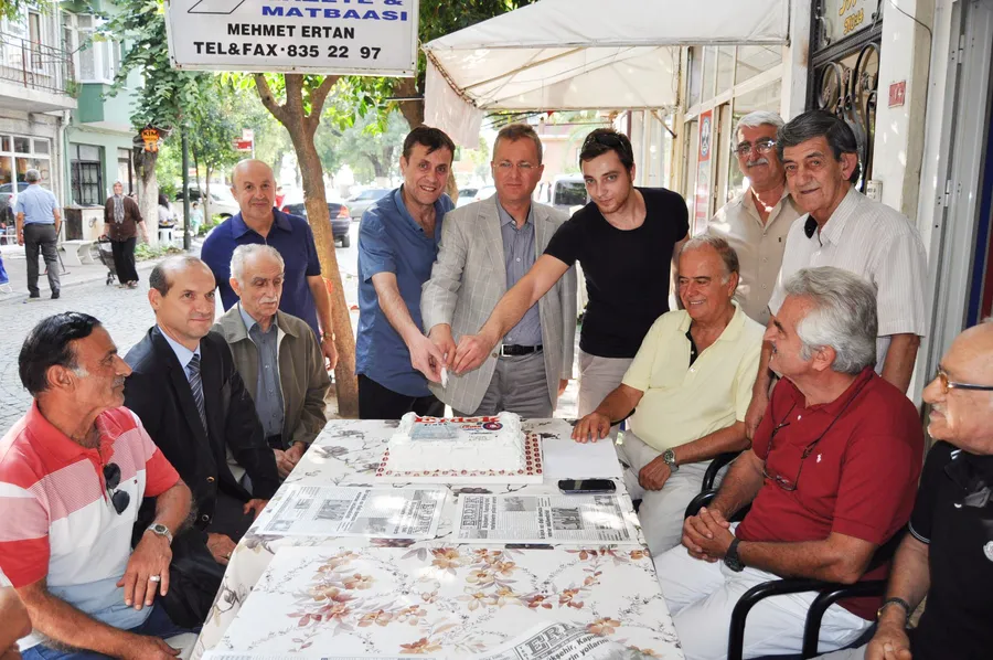 Dönemin Erdek Kaymakamı İsmail Kaygısız başta olmak üzere geniş bir katılımla, YENİ ERDEK’in 41. yaş gününü, sevgili Mehmet, oğulları Taygun ve Tuncay’la birlikte pastayı keserek kutlamıştık. O fotoğraf, çok önemli bir anı olarak arşivimizde yer alıyor.
