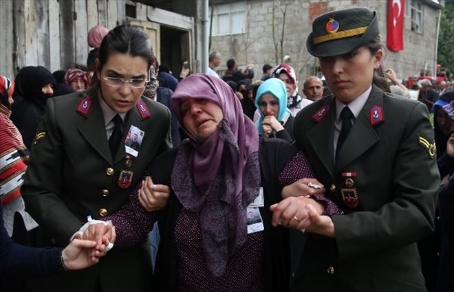 Batman´da jandarma karakoluna PKK´lı teröristlerce bombalı araçla düzenlenen saldırıda şehit düşen Jandarma Uzman Çavuş Soner Fazlıoğlu´nun cenazesi, Rize´nin Kendirli Beldesindeki baba evine getirildi.