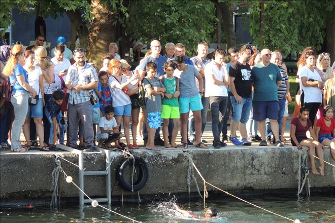 Akşam üstü ise Erdek balıkhane önü yat iskelesi ve çay bahçelerinin önünde ikinci tören gerçekleşti. Burada, önce Kaymakam Ekrem Çalık, Garnizon Komutanı Deniz Albay Ateş Kalkan ve Belediye Başkan Vekili Hasan Yapakçı, bir deniz aracıyla deniz şehitlerimizin anısına denize çelenk bıraktılar. Saygı duruşu ve İstiklal Marşı´nın söylenmesinin ardından deniz etkinlikleri gerçekleşti. Yüzme yarışları çekişmeli mücadelelere sahne oldu. Yarışlarda şu dereceler alındı.