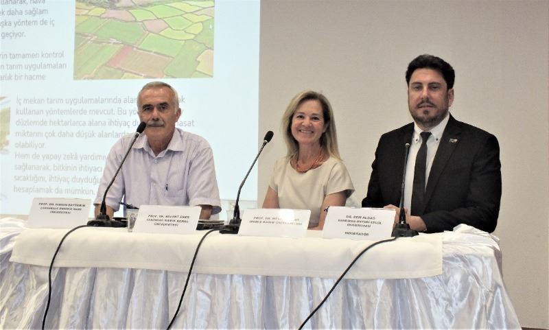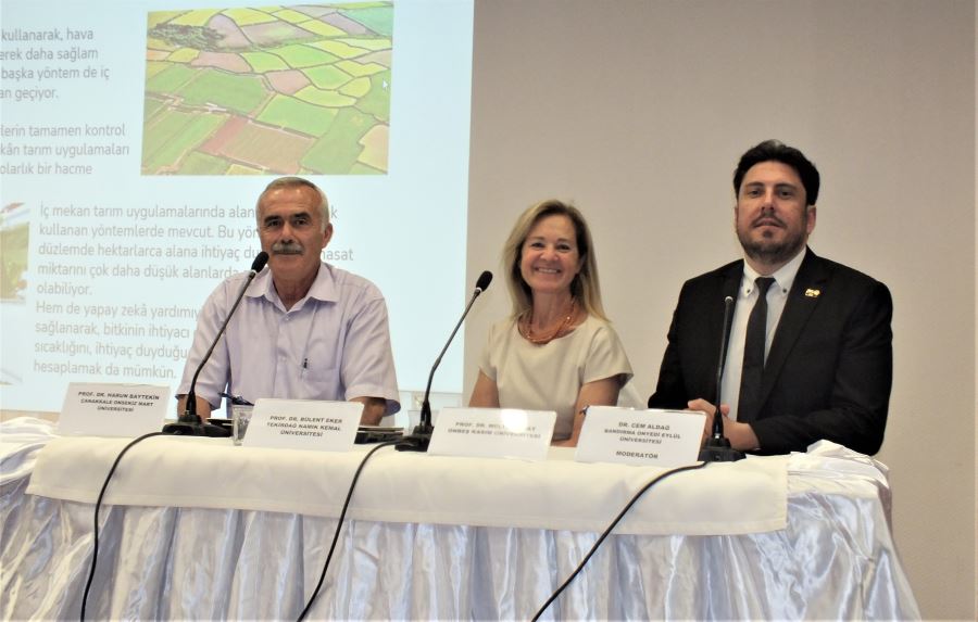 Eker, “Yapay tarımda yapay zekâ” konulu sunumunda, 44 yıllık eğitim yaşamının 33 yılını profesör olarak geçirdiğini belirtti. Birleşmiş Milletler’in öngörüsüne göre, 2050 yılında dünya nüfusunun 9,7 milyara ulaşacağına dikkati çekerek, “Bu nedenle yeni gıda teknolojileriyle üretim yapmak zorundayız. Artık tarımda ileri teknolojiyi kullanmalıyız. Yapay zekâ, tarıma çeşitli şekillerde yardımcı olur. Tarım sektörüne uygulamada büyük fırsatlar sunar” dedi.