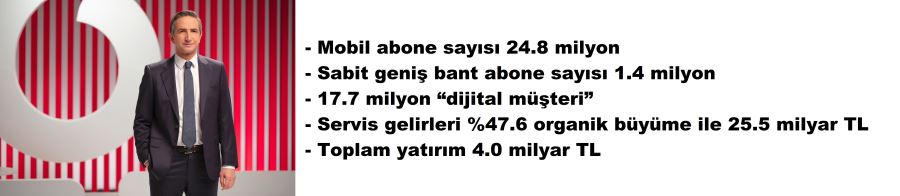 “Vodafone olarak, Türkiye pazarında 17 yılı geride bıraktık. Bu süreçte, Türkiye’nin en büyük uluslararası doğrudan yatırımlarından biri olarak, ülkemizin büyümekte olan telekom pazarındaki yerimizi aldık. 2022-23 mali yılında toplam 4.0 milyar TL yatırım yaparak Türkiye ekonomisine ve dijitalleşmeye katkıda bulunduk. Yeni nesil bağlantı ve dijital servisler şirketi olma yolunda emin adımlarla ilerliyoruz. Makroekonomik koşulların etkisiyle yüksek artış gösteren maliyetlerimize rağmen hedeflerimize paralel olarak büyümemizi sürdüreceğimize ve daha da güçlenerek yolumuza devam edeceğimize inanıyoruz. Diğer yandan, amaç odaklı vizyonumuz doğrultusunda çevre ve toplum üzerinde yarattığımız etkiye de önem veriyor ve faaliyetlerimizi Çevresel, Sosyal, Yönetişim kriterlerine uygun olarak sürdürüyoruz. Ülkemizin ve sektörümüzün geleceğine duyduğumuz güvenle yatırımlarımıza devam edeceğiz.”