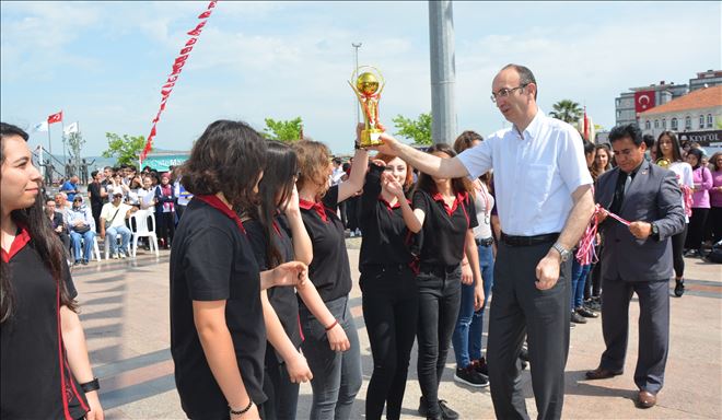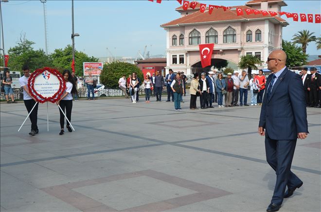 Cumhuriyet Meydanı´nda Atatürk Anıtına çelenk sunumu, saygı duruşu ve İstiklal Marşı´nın okunması ile başlayan törenler sahil bandında kurulan platformda devam etti.