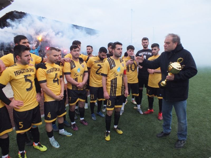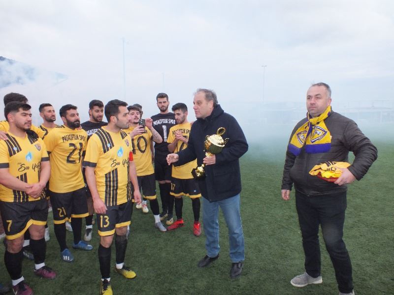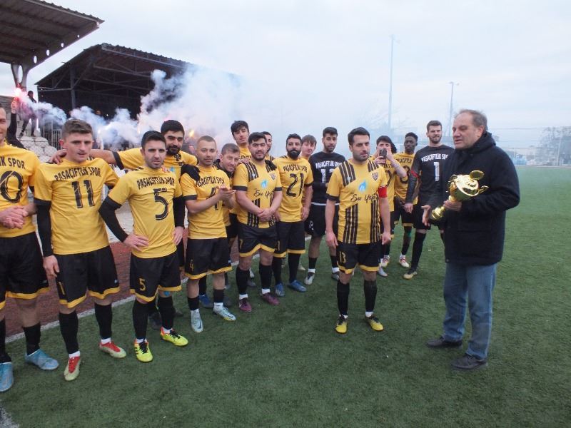 B grubunda önceki hafta şampiyonluğunu garantileyen Gönen takımı Paşaçiftlikspor, Bandırma Sanayi sahasında, 600 Evlerspor’u 6-0 yendiği maçtan sonra şampiyonluk kupasını aldı.