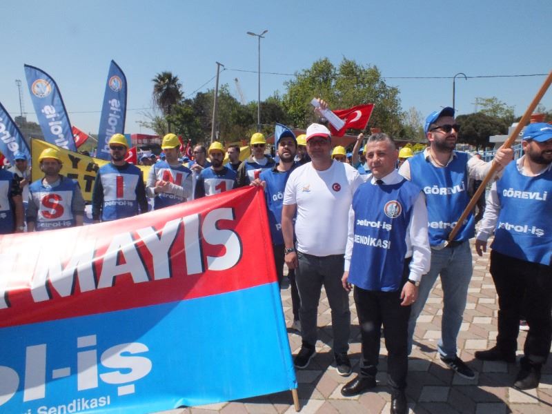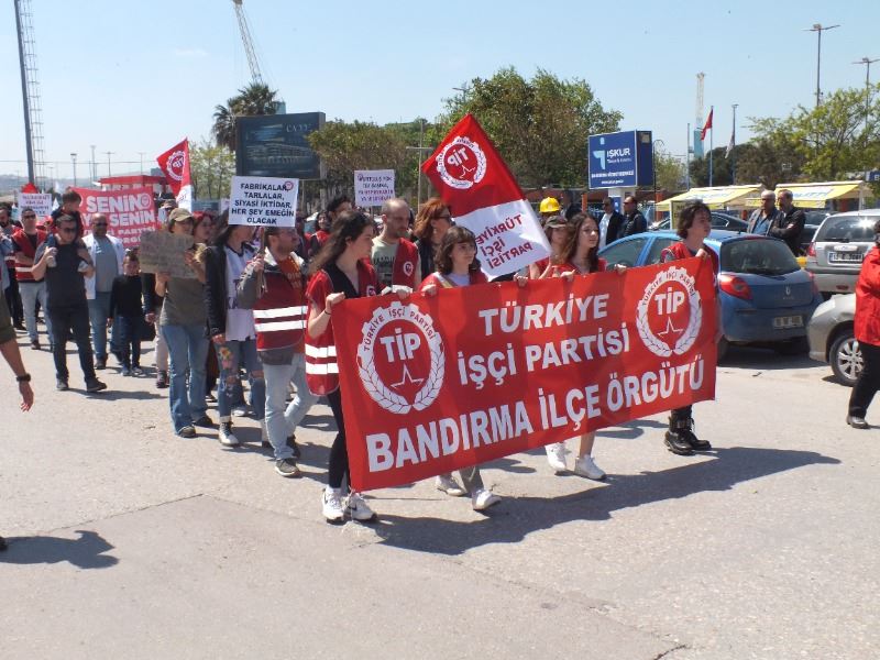 Bandırma Emek platformu dönem sözcüsü Petrol İş sendikası Şube Başkanı Tuncay Topuz'un 1 Mayıs İşçi ve Emeğin gücüne hitap eden konuşması alanda büyük karşılık buldu.