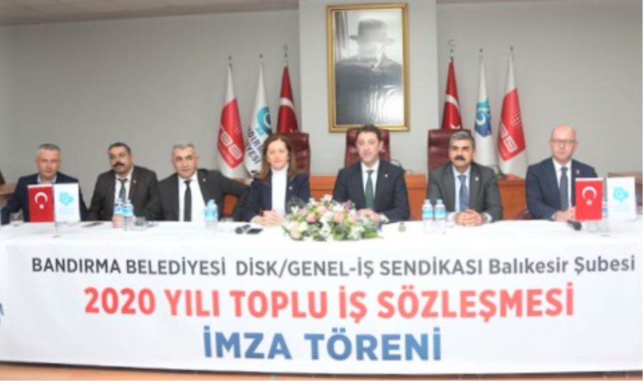 Bandırma Belediyesinde çalışan işçilerin toplu iş sözleşmeleri Bandırma Belediyesi Meclis Salonunda düzenlenen törenle imzalandı.
