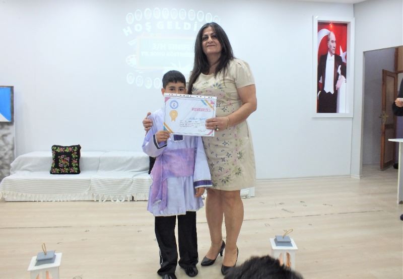Ardından 3-H sınıf öğretmeni Nurcan Kocataş, “sınıf annesi” Meral Arslan’a ve halk oyunları öğretmeni Aslı Fıçıcılar’a plaketlerini verdi.